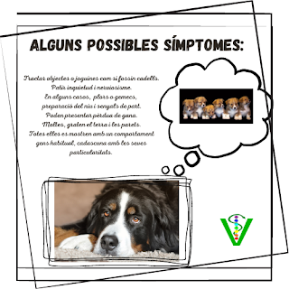 Què és la pseudogestació? La pseudogestació, també coneguda popularment amb el nom d'embaràs psicològic, fa referència a la conducta i signes clínics d'una gossa embarassada quan en realitat no ho està. Aquesta, pot aparèixer tant en gosses que han estat muntades com en les que no. La majoria de gosses no esterilitzades poden presentar signes de pseudogestació després del zel. Quins són els signes i quan apareixen? Els símptomes normalment apareixen 4-9 setmanes després del zel , i simulen una gestació real. Els més freqüents són: augment de les mames, amb possible producció de llet, cansament, vòmits puntuals i retenció de fluids. Sovint el motiu de consulta és perquè mengen menys. La pseudogestació es pot produir a qualsevol edat, i no sempre apareix després de cada zel. Així mateix, els signes que observem poden variar en els diferents zels. Pel que fa als canvis de comportament, podem veure com fan niu, es comporten com si tinguessin un cadell (a vegades agafen un peluix i el protegeixen com si fos el seu fill), estan inquietes, cansades, sense ganes de jugar, inclús algun cop poden mostrar agressivitat. Per què es produeix? Després de cada zel, les gosses produeixen un tipus d'hormones que serveixen per preparar el cos per mantenir una gestació. En el cas que no estiguin embarassades, aquestes hormones començaran a disminuir després de 4-6 setmanes, de manera que els símptomes no apareixeran. Al contrari, si perduren passat aquest temps es produirà una pseudogestació. Com es pot tractar? Aquells casos en què presentin signes lleus de pseudogestació, sovint no es necessari administrar cap tractament, i els símptomes desapareixeran cap als 14-21 dies. Per altra banda, es recomana tractament en aquelles gosses que manifestin signes clínics marcats. Per exemple, en gosses que produeixen llet, es pot infectar i causar infecció. Per tal de prevenir futurs episodis, en gosses que no es volen fer criar, es recomana l'esterilització. En eliminar la font d'hormona, ja no en podran tenir més. Per a qualsevol consulta, ens trobareu a Av. S'Agaró 148 de Platja d'Aro o al telèfon 972 851 055 // 627 09 16 76 (consultes urgents). Equip veterinari Arovet.
